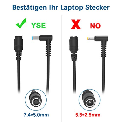 Connettore: un lato è 7,4 x 5,0 mm femmina, l'altro lato è 4,5 x 3,0 mm connettore per HP Pavilion, HP Envy, HP Elitebook, HP Probook, HP Spectre, HP Sleekbook, HP Chromebook. Si prega di verificare ancora una volta se la dimensione del connettore è adatta all'adattatore CA