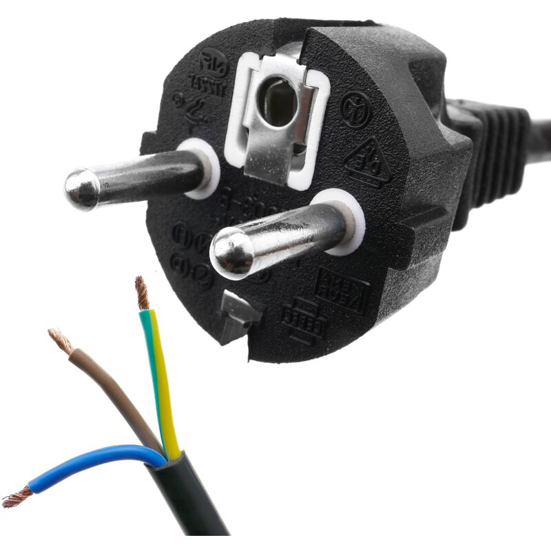 Cavo di alimentazione per dispositivi elettrici da utilizzare in installazioni interne, presenta un connettore Schuki maschio (CEE 7 tipo F) e all'altra estremità altri terminali blu, giallo e verde a 3 fili. Caratteristiche del prodotto MATERIALE: Cavo elettrico tipo H0SVV-F e sezione 3 x 1,5 mm² per alimentazione Schuko. CONNETTORI: Il cavo ha un connettore Schuko maschio diritto (CEE 7 tipo F) da 16A 250V MISURE: Il cavo ha una lunghezza di 1,8 m DESIGN: Cavo elettrico nero IDEALE: ideale per assemblaggi personalizzati che richiedono un collegamento alla corrente, come le prese multiple