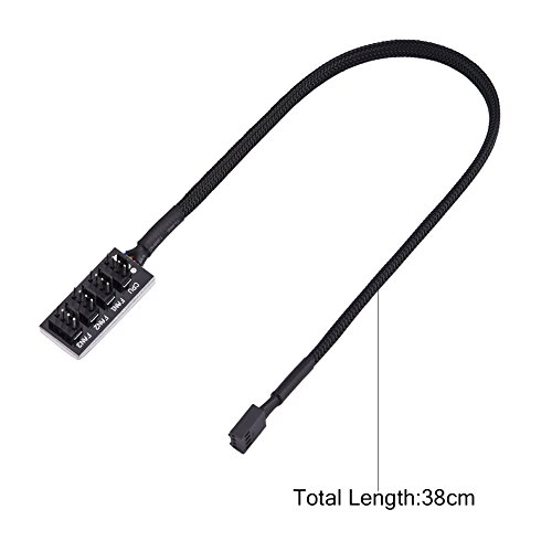 Cavo di Alimentazione a 4 pin - Hub Splitter PWM a 4 vie con Maniche per gli Appassionati di Computer - Compatibile con Ventole a 3 pin / 4 pin - Funzione PWM di Supporto HUB della Ventola a 4 Porte