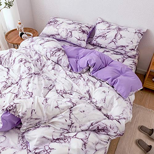 Alinory Home Bedding 3Pcs / Set Set Biancheria da Letto, Copripiumino Federa Biancheria da Letto marmorizzata, Hotel per(Marble-Purple)