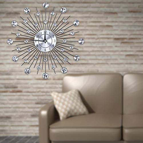 Alinory Orologio da Parete, Scintillante Bling Orologio da Parete a Forma di Fiore in Argento Metallico per Ufficio Soggiorno(1)