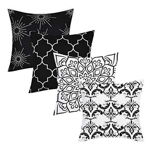 Alishomtll - Set di 4 federe decorative per cuscini da esterni in tessuto morbido, per divano, camera da letto, 45 x 45 cm, colore: Nero