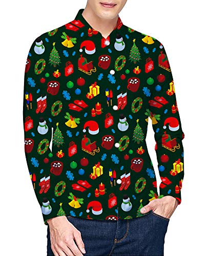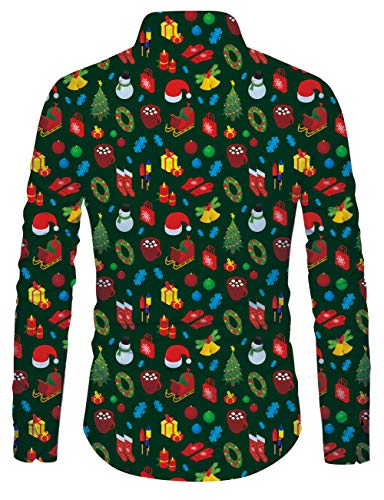 ALISISTER Camicie Uomo Divertenti 3D Cool Modello Maniche Lunghe Natale Camicia Casual Party Slim Fit Shirt for Christmas Party M