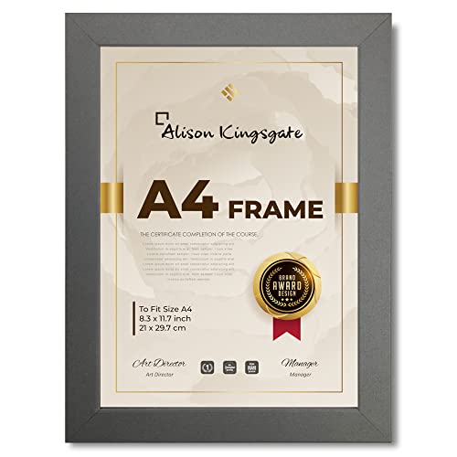 Alison Kingsgate Cornice per foto formato A4, 29,7 x 21 cm, utilizzabile per foto e foto, poster, cornice A4 con foglio in perspex trasparente e gancio da parete (grigio scuro)