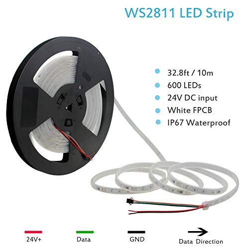 ALITOVE WS2811 indirizzabile RGB LED Strip Light 24V 33ft 600 LED Dream Color Programmabile Digital LED Pixel Lights Rainbow Chasing Effetto Luce Impermeabile IP67 Bianco PCB per Arduino Raspberry Pi