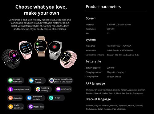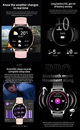 【Smart Watch multifunzione】 Rispondi / effettua una chiamata, Interfaccia utente personalizzata, Monitoraggio dell'attività, monitor della salute, monitor del sonno, pedometro automatico, sveglia, Timer, cronometro, modalità multi-sport, allenamento della respirazione, promemoria sedentario, Display meteo, controllo della musica, controllo della fotocamera, giochi casuali, codice QR, trova telefono, chiamata in arrivo e promemoria SMS ecc. Regalo molto bello per uomini e donne.