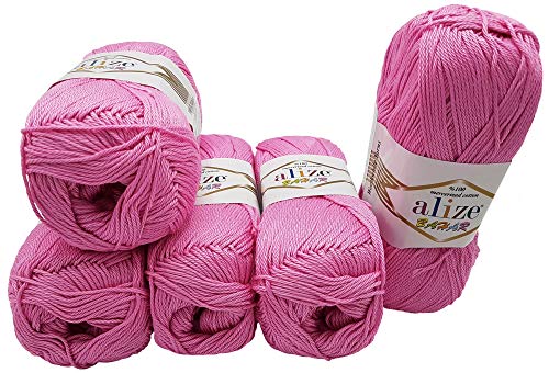 Alize Bahar 5 x 100 Grammi Cotone Mercerizzato Tinta Unita, 500 Grammi Lana in 100% Cotone Mercerizzato