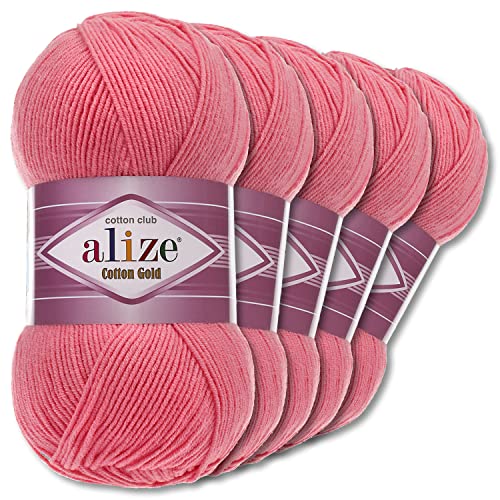 Alize 5 Gomitoli di lana Cotton Gold Premium da 100 g, disponibile in 39 colori, lana estiva, per realizzare gli Amigurumi (33, rosa caramella)