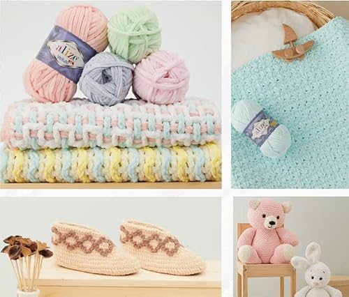 5 gomitoli di lana da 100 g, per lavori a maglia, lana di ciniglia.