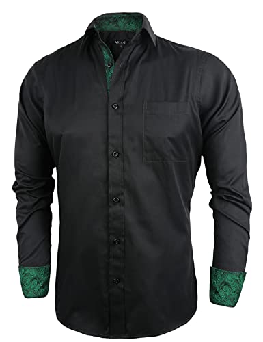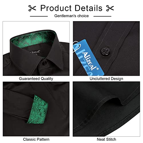 Alizeal - Camicia da Uomo a Maniche Lunghe, con Chiusura a Bottoni, Nero e Verde Scuro., S