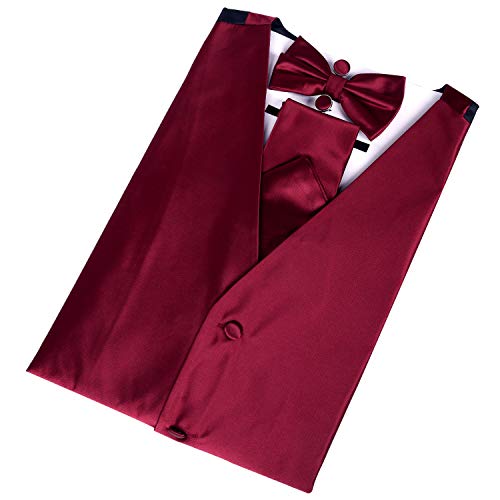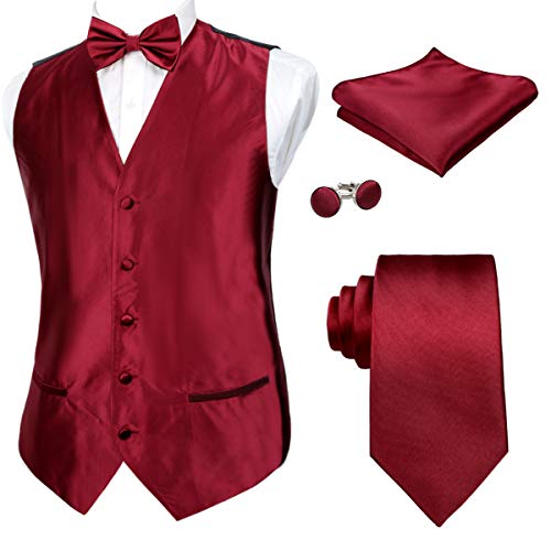 Alizeal Set da uomo classico 5 pezzi in raso tinta unita, Bordeaux, S