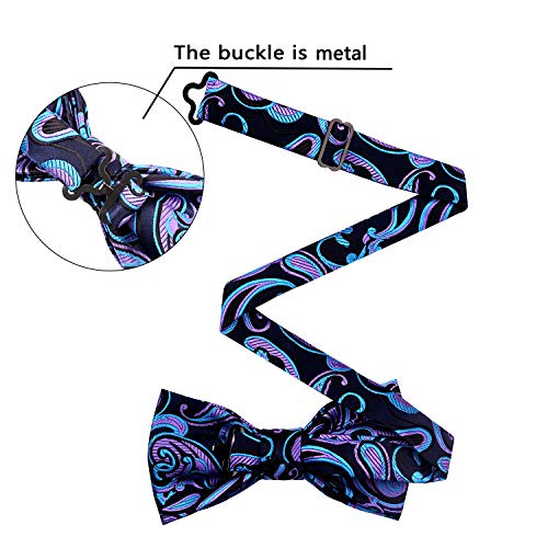 Alizeal Set di papillon pre-legato floreale multicolore da uomo, quadrato tascabile e gemelli, 018-Blu Reale+Verde+Bianco, Taglia unica