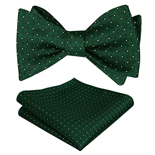 Alizeal Uomini Silver Dot Wedding Wedding Pre-tied Bow Tie e Hanky, verde scuro