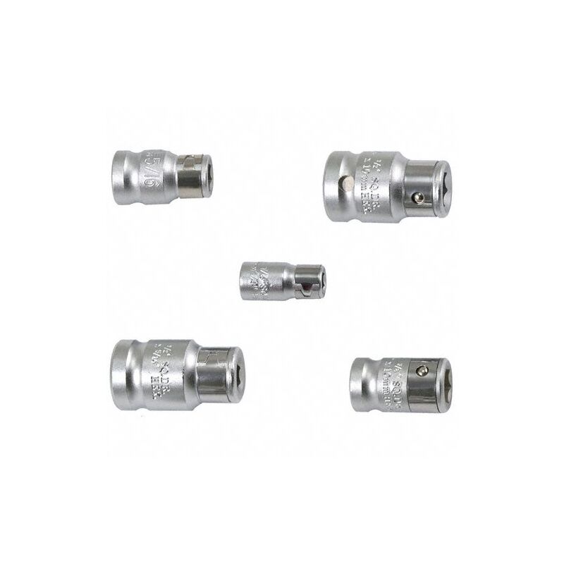 Uso: adatto per tutti i tipi di cricchetti, chiavi a bussola, chiavi dinamometriche, maniglie scorrevoli, ecc. Materiale: acciaio al cromo vanadio, superficie cromata opaca. Profilo: esagonale. Contenuto della confezione: 1/4 (6,3 mm) per punte da 1/4 (6,3 mm). 10,0 mm per punte da 5/16 (8,0 mm). 10,0 mm per punte da 10 mm. 1/2 (12,5 mm) per punte da 5/16 (8,0 mm). 1/2 (12,5 mm) per punte da 10 mm. Ambito di applicazione: industria, artigianato e fai da te.