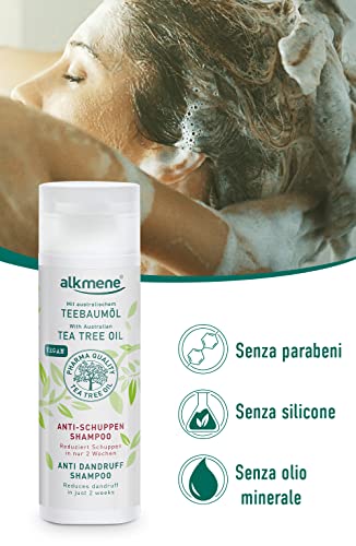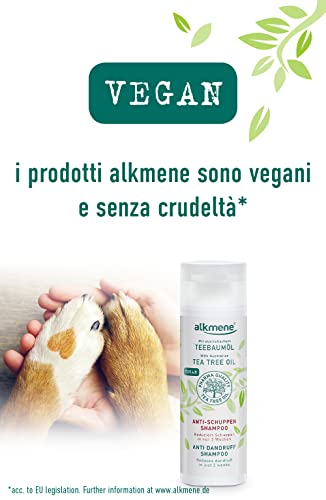 Alkmene Tea Tree Oil Anti Dandruff Shampoo - Riduce la forfora in sole due settimane - shampoo vegano per capelli senza siliconi, parabeni, oli minerali - shampoo antiforfora (1x 200 ml)