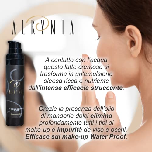 Alkymia - Olio Struccante Viso e Occhi da 100 ml Made in Italy, Latte Detergente Viso Pelle Mista Sensibile e Secca, Prodotti Skincare Viso Struccante Occhi Sensibili Idratante, Olio Denso Struccante