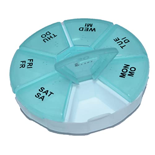 Pratico portapillole, portapillole, portapillole, portapillole, contenitore per medicinali, contenitore rotondo per 7 giorni della settimana. Organizer per pillole con suddivisione chiara. Formato tascabile, maneggevole