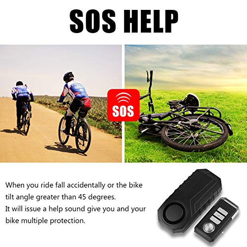 Allarme Bici, 113dB Forte Suono Sirena Allarme per Triciclo / Moto / Auto, Allarme Antifurto Senza Fili del Telecomando Allarme Per Bicicletta, IP55 Impermeabile, Sensibilità Regolabile a 7 Livelli