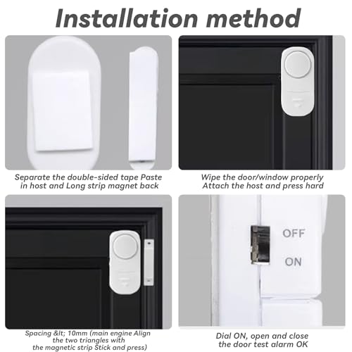 【Design autoadesivo】 Il design autoadesivo dell'allarme porta Allarme Casa finestra consente un'installazione senza sforzo senza strumenti complicati o perforazioni. I cuscinetti adesivi inclusi garantiscono una forte adesione a varie superfici, offrendoti la flessibilità di posizionare gli allarmi dove ne hai bisogno.