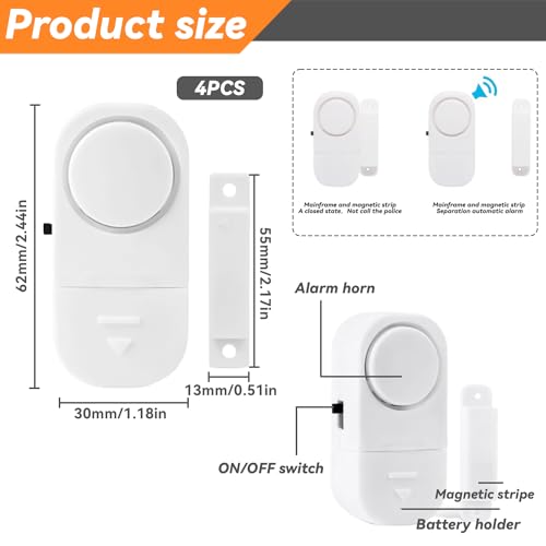 Allarme Casa Set da 4: Nizirioo Allarme per Finestre con Batterie Incluse, con Allarme Rapido Forte 90dB, Allarmi per Finestra con Sensore Magnetico Wireless, Allarme per Porte e Finestre