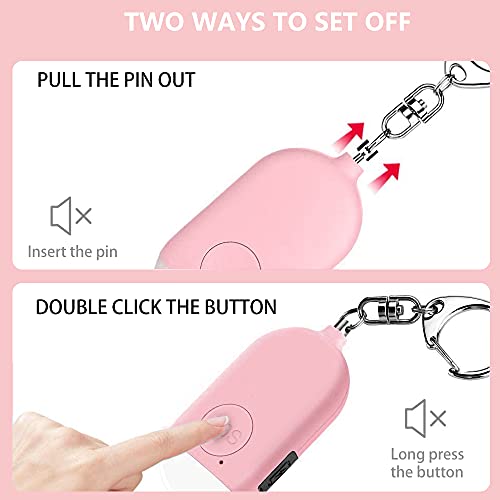 【Durevole E Di Alta Qualità】 L'allarme di sicurezza per autodifesa adotta materiale ABS ecologico e durevole, il design è alla moda, si adatta a studenti, jogging, anziani, bambini, donne, lavoratori notturni, nottambuli. è anche una scorta necessaria per i viaggi, le escursioni e il campeggio.