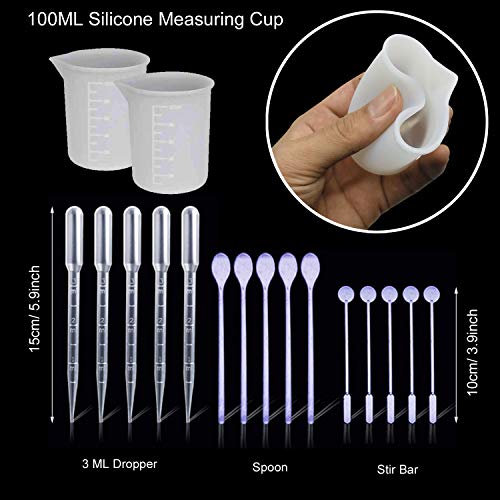 26 Pz kit di resina siliconica: Include 7 pz resina siliconica, come cubo, a forma di amore, sfera, diamante, piramidi, triangolo e pietra, 2 pz misurini in resina di silicone, 5 pz contenitori in plastica, 5 pz agitatori in plastica, 5 pz cucchiaini in plastica, 2 pz siringhe. Con questi stampi artistici, ti divertirai molto a realizzare i tuoi mestieri.
