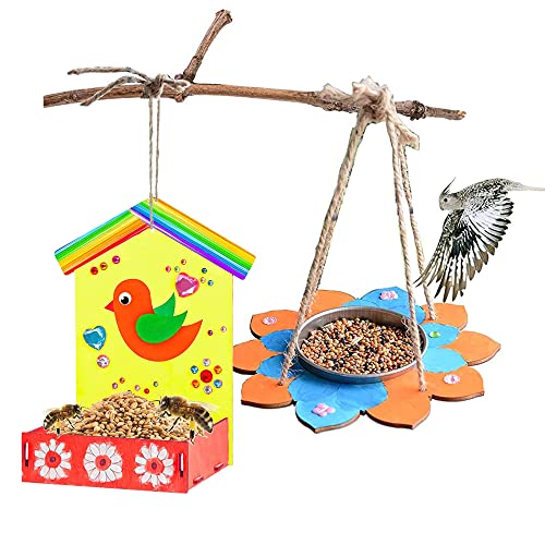 La confezione include: 3 mangiatoie per uccelli non assemblate con 4 pennelli (colori acrilici non inclusi), 3 corde, 1 fogli di adesivi diamantati e pennarello a 8 colori. Pretagliato e scanalato, facile da costruire e dipingere e appeso in giardino o su un balcone per far divertire gli uccelli.