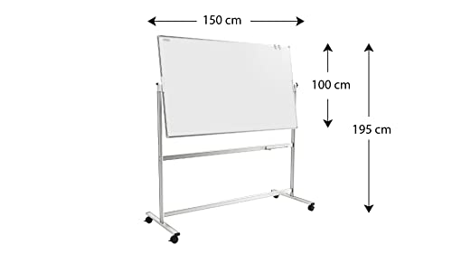 ALLboards Lavagna Bianca Magnetica Con Ruote 150x100cm Mobile con Doppia Superficie Cornice in Alluminio Scrivibile e Cancellabile a Secco