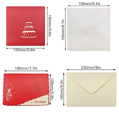 La confezione include: 2 pezzi 3D Pop up Biglietti di auguri con busta. Dimensioni: 13,5 x 19,5 cm.