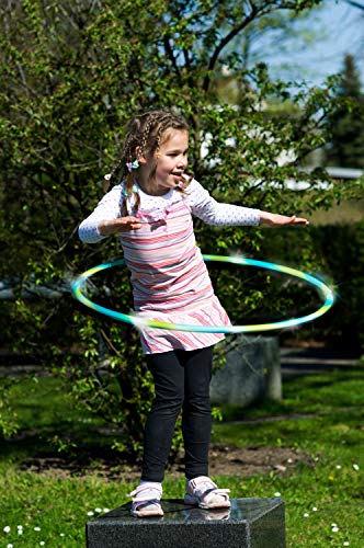 Il set sportivo a LED di alldoro mette immediatamente in ammirazione bambini e adulti. Il cerchietto per bambini ha un diametro di circa 72 cm e garantisce un affascinante gioco di colori al buio