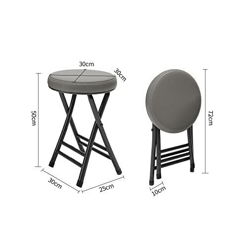 Alleda Sgabello in metallo nero e grigio pieghevole imbottito 50 x 30 x 30 cm con guida per pavimento e robusta ecopelle