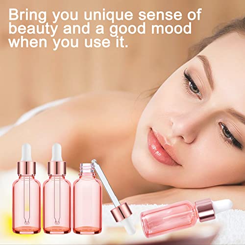Alledomain Bottiglie in vetro oro rosa da 20 ml con pipette contagocce, bottiglie vuote contagocce, tappo in metallo oro rosa ricaricabile, miscele per aromaterapia, liquido chimico