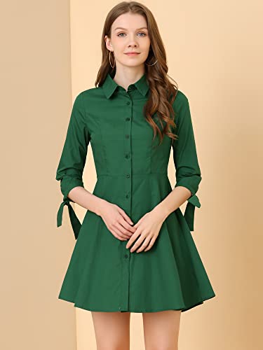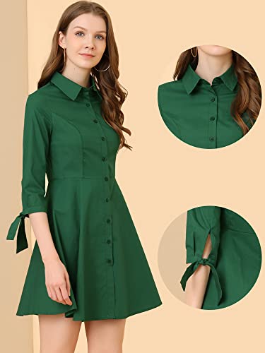 Allegra K Abito da donna a camicia in cotone con bottoni e colletto rovesciato, Verde scuro, 40