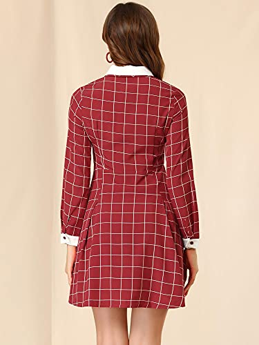 Allegra K - Abito da donna con colletto Peter Pan a contrasto, Rosso, 12