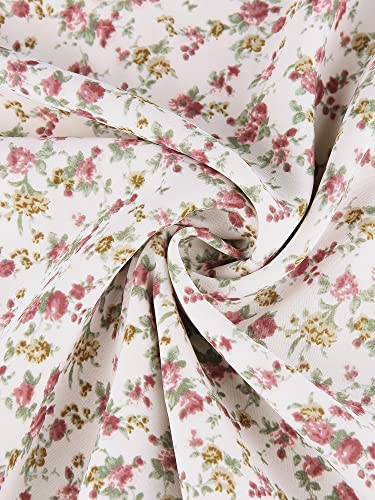 Allegra K Abito da donna con scollo a cuore e maniche a sbuffo sul retro e orlo increspato floreale, Beige, 44