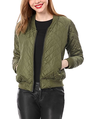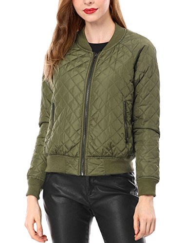 Allegra K Bomber trapuntato da donna con zip e maniche lunghe raglan, Verde, XL