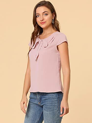 Allegra K Camicetta Donna Camicia a Maniche Corte Scollo a V e Collo Alto Rosa XL