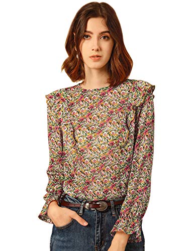 Allegra K Camicetta da Donna con Colletto a Volant a Maniche Lunghe con Stampa Floreale a Maniche Lunghe Rosso XS