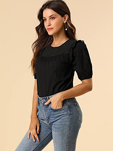 Allegra K Camicetta da donna a maniche corte senza colletto con volant e spalle a sbuffo, Nero, 40