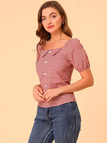 Allegra K Camicetta da donna con scollo quadrato a nido d'ape a quadretti, Rosso, 40