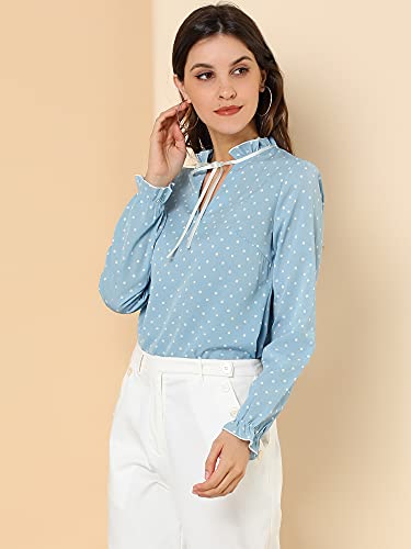 Allegra K Camicetta da donna con scollo a volant Vintage Bell Manica lunga Top, Azzurro-pois, 48