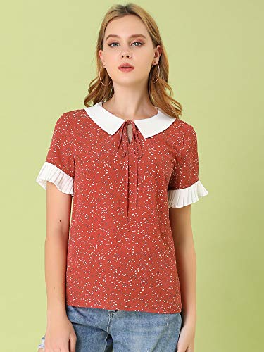 Allegra K - Camicetta da donna vintage a contrasto Peter Pan Colletto a maniche corte a pois Rosso 48