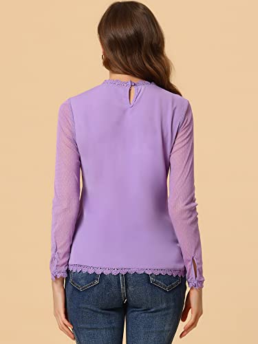 Allegra K Top Camicetta in Pizzo Camicia in Chiffon Estate Donna Manica Lunga T-Shirt Top Tinta Unita Contadino Girocollo Lilla L