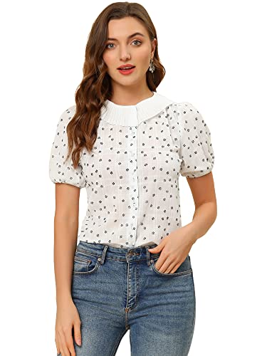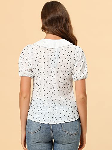 Allegra K Camicia Blusa Abbottonata a Maniche Lunghe con Colletto a Pieghe Floreale Bianco XS