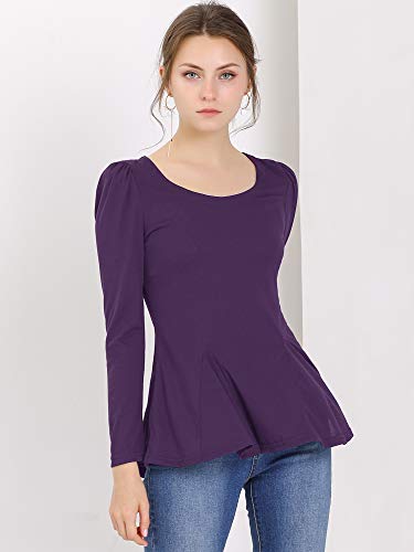 Allegra K Camicia casual peplo a maniche lunghe da donna, Viola, 48