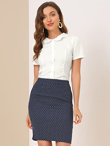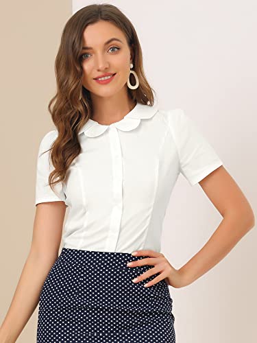 Allegra K Camicia Donna abbottonata Carriera Camicetta con Maniche a Sbuffo con Colletto alla Peter Pan Bianco S