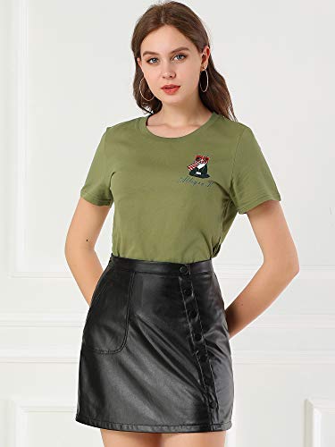 Allegra K Camicia Stampa in Cottone Donna Pullover a Maniche Corte Casuale T-Shirt Cartone Girocollo Verde Navy-Smoking Gatto S