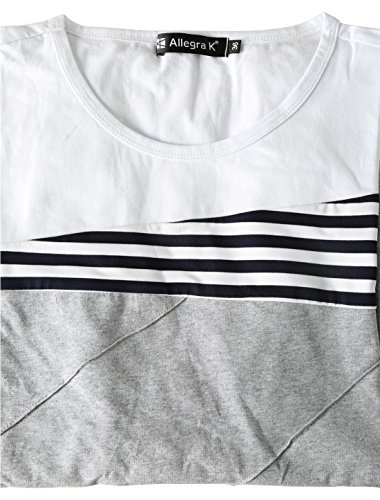 Allegra K Uomo Colore A Blocchi Righe T-Shirt - cotone, Bianco, 3% spandex 97% cotone, Uomo, L