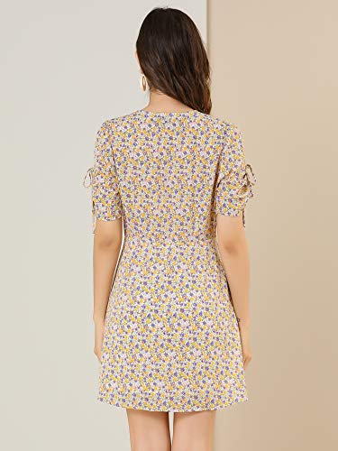 Un look divertente per le giornate estive, questo mini abito floreale con scollo a V è dotato di maniche a sbuffo e una linea ad A. Indossalo e sei pronto per l'estate.