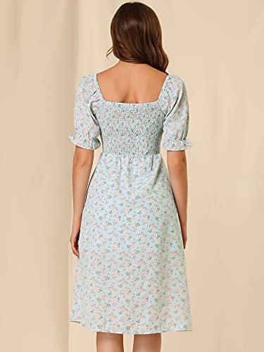 Allegra K Donna Abito Floreale Midi Maniche Sbuffo Collo Quadrato Blu XS